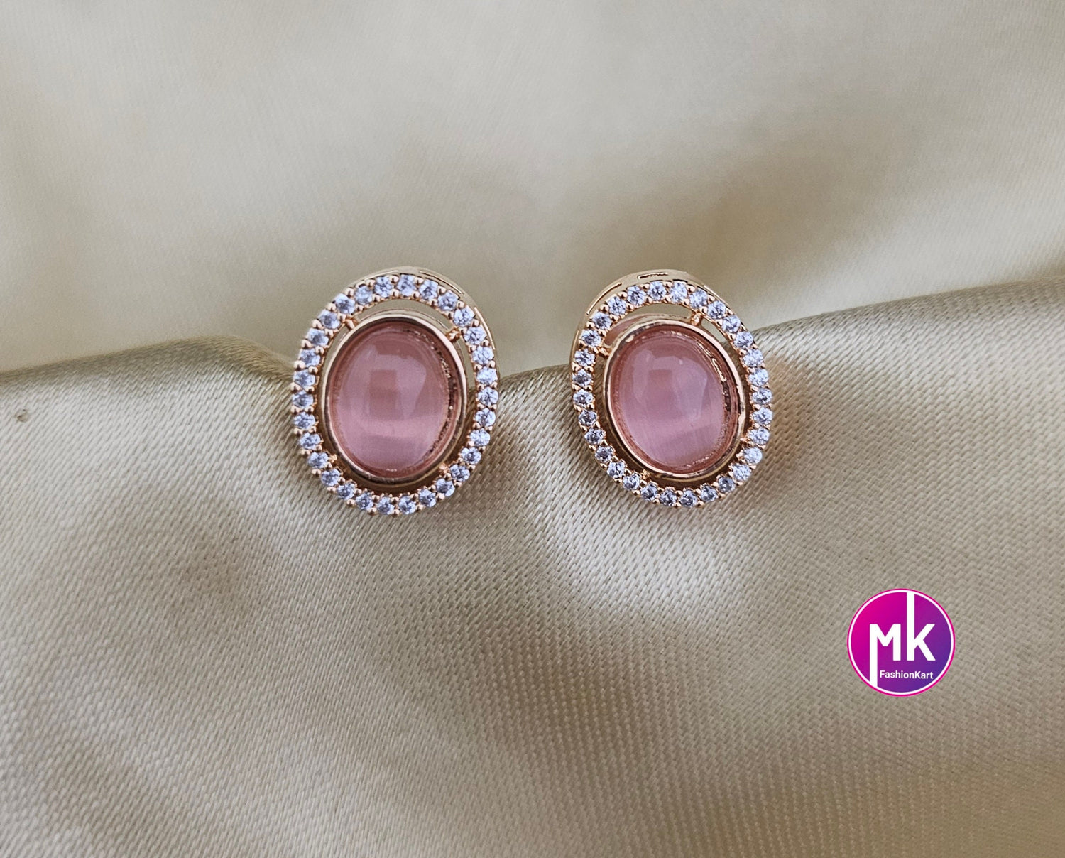 American Diamond Silver Finish CZ/AD Stone Baby pink Necklace with Earrings - Adult cum Teen Necklace - Diamond Replica - MK Fashionkart
