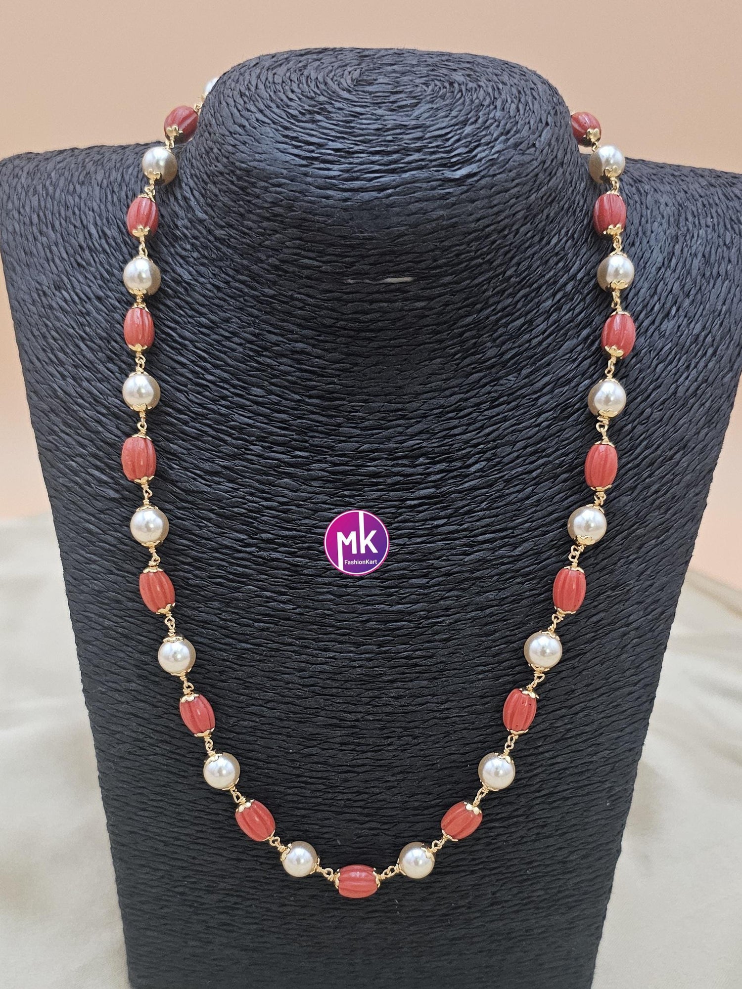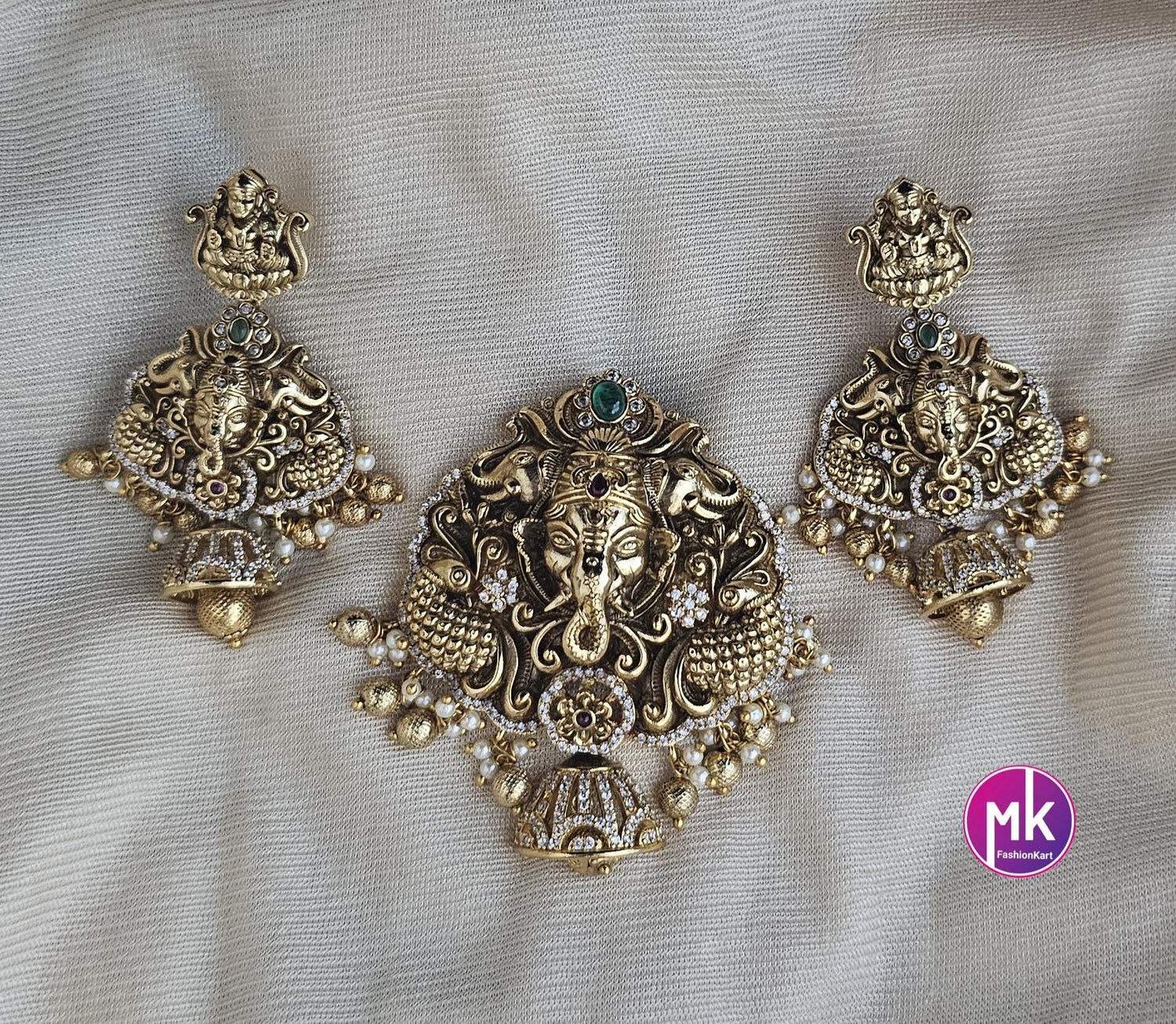 American Diamond Premium polish Gold finish Necklace with pearls and matching Earrings - Adult cum Teen Necklace - MK Fashionkart