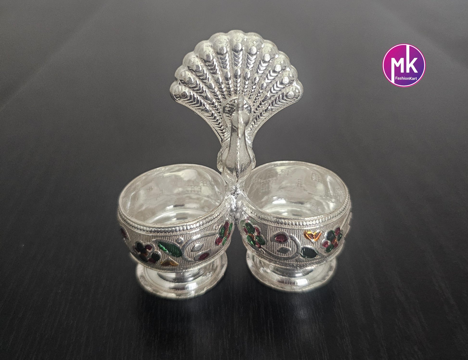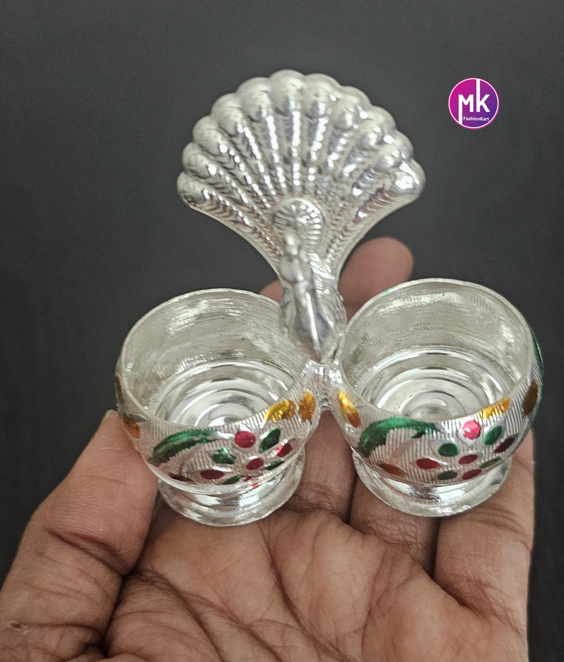 Peacock design German Silver Meenakari work Haldi Kumkum holder for House warming Gift, Pooja return gift - MK Fashionkart