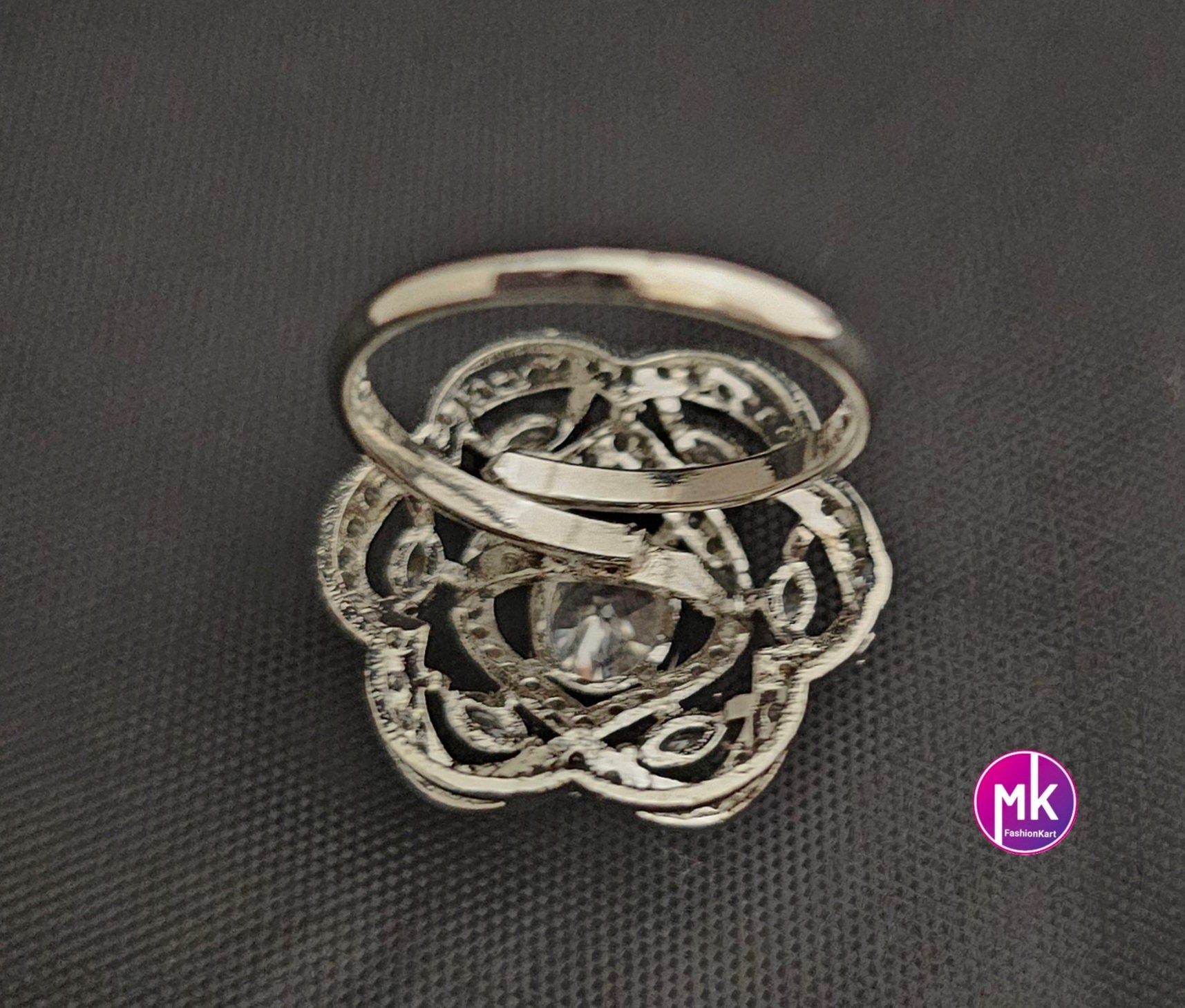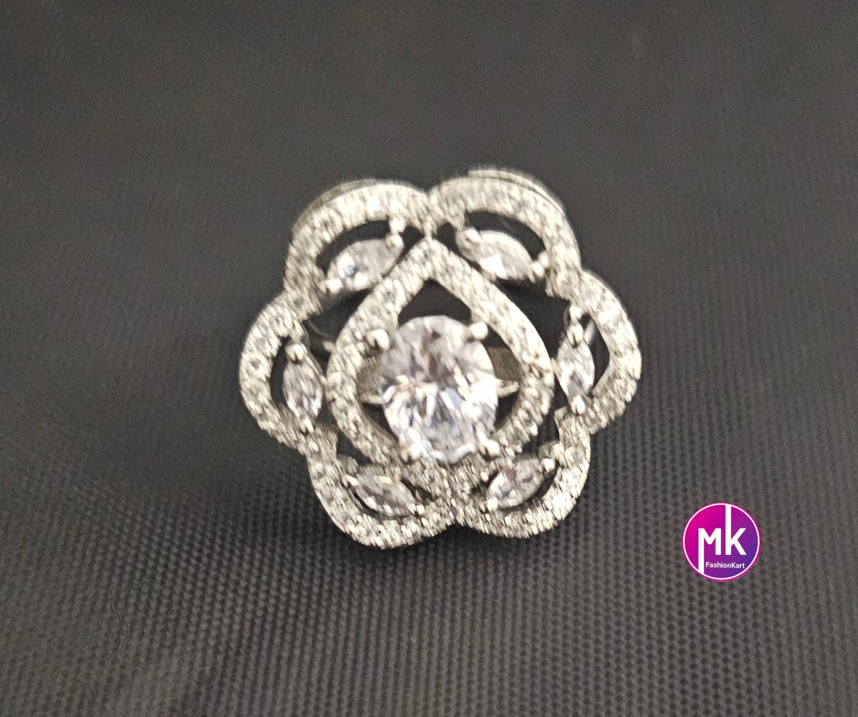 Silver Finish premium quality AD/CZ Stones Finger Ring (Adjustable)/Bollywood Ring - MK Fashionkart