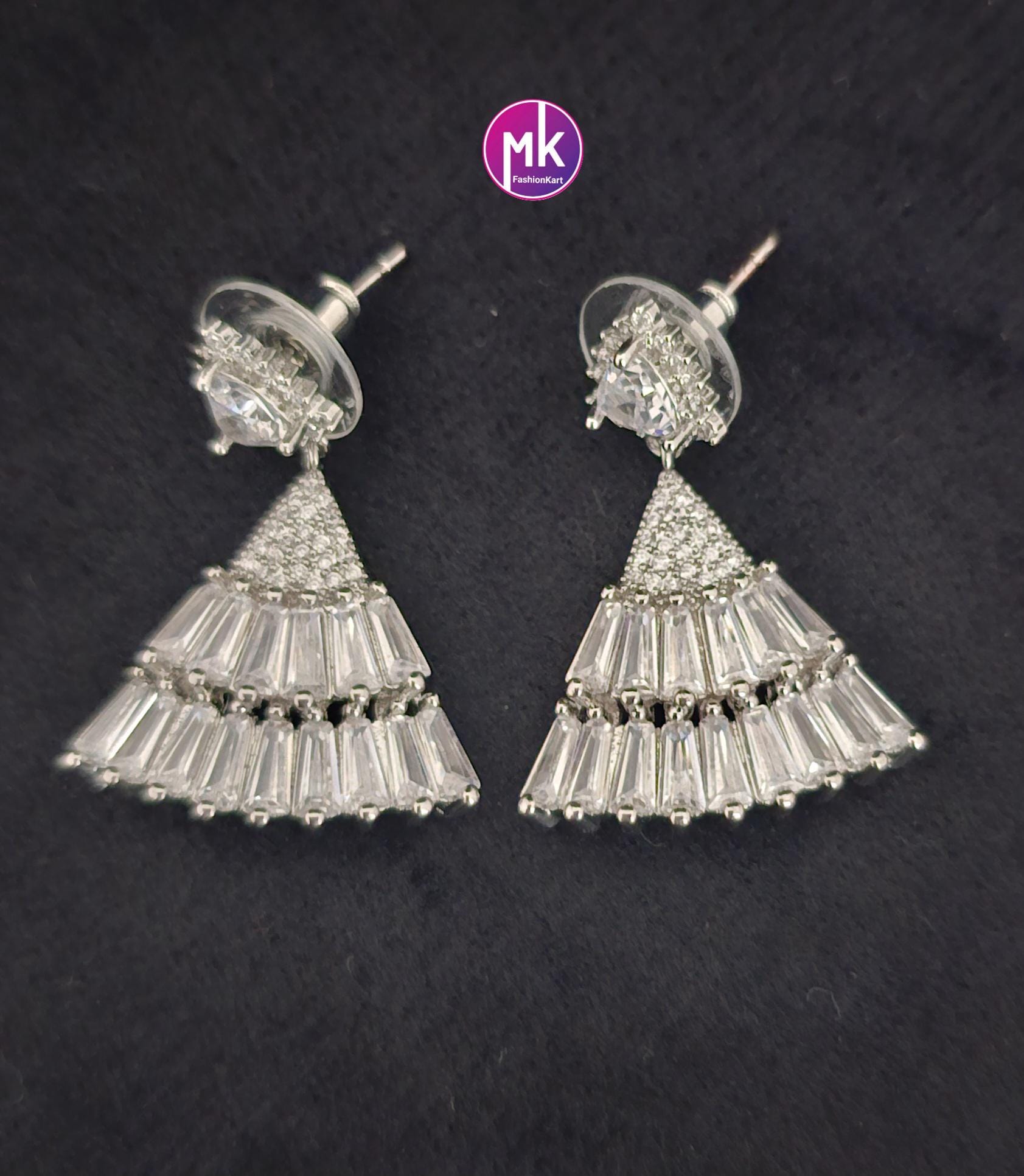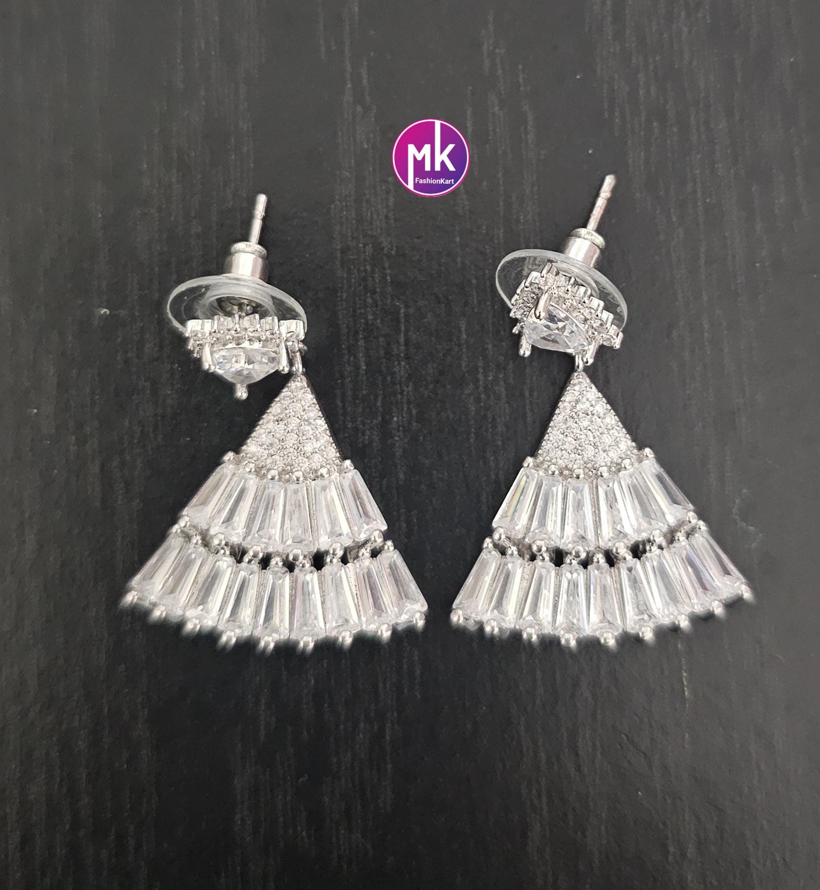 Trendy Silver finish AD and CZ stone Earrings - Partywear Earrings - MK Fashionkart - Fashion Jewelry